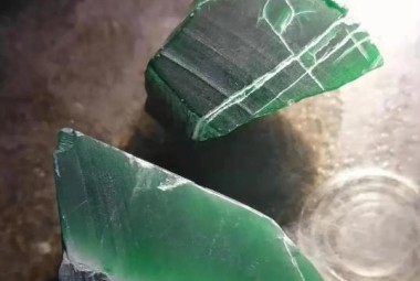 这种翡翠产自缅甸的龙肯矿区,颜色是满绿色,几乎不透明,水头很差,虽然颜色鲜艳,但是价格一般来说很低。