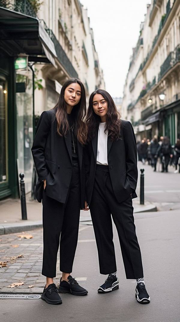 谁说红黑搭配非要轰轰烈烈?有时候最打动人心的反而是那些暗戳戳的小细节。黑色西装口袋里探出的红丝绸方巾,帆布鞋上那两根红色鞋带,甚至只是手机壳上那道若隐若现的红色镶边——就像好听的副歌不需要整首循环,恰到好处的点缀反而更让人念念不忘。