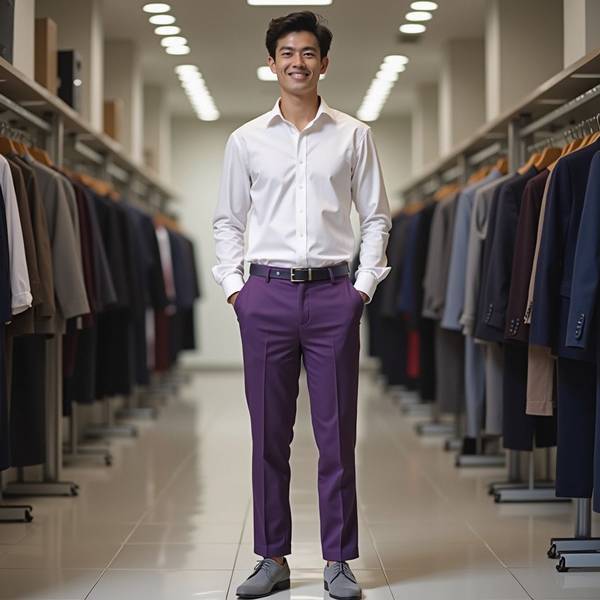紫色的裤子配什么颜色的上衣,紫色裤子配色指南:最佳上衣色彩搭配方案